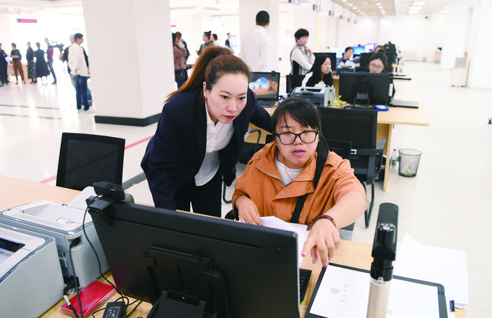 “敞開辦公區(qū),讓辦公人員走出來,請辦事群眾走進來,這種方式將以前隔著窗口的‘面對面受理’,變成了在同一張辦公桌上的‘肩并肩服務(wù)’,這樣的方式既便捷又親切?!笔姓?wù)服務(wù)和數(shù)字化建設(shè)管理局相關(guān)負責人介紹?!伴_放式辦公、幫辦式服務(wù)”也是一種保姆式服務(wù)。針對不熟悉如何利用網(wǎng)絡(luò)自助辦理、不了解操作流程或不愿意自己辦理的群眾,工作人員會與他們坐在一起,一對一指導,并提供信息錄入、申請材料查驗等全程網(wǎng)上幫辦服務(wù),辦事群眾僅需自己完成最后的提交程序,整個辦理過程公開透明。
