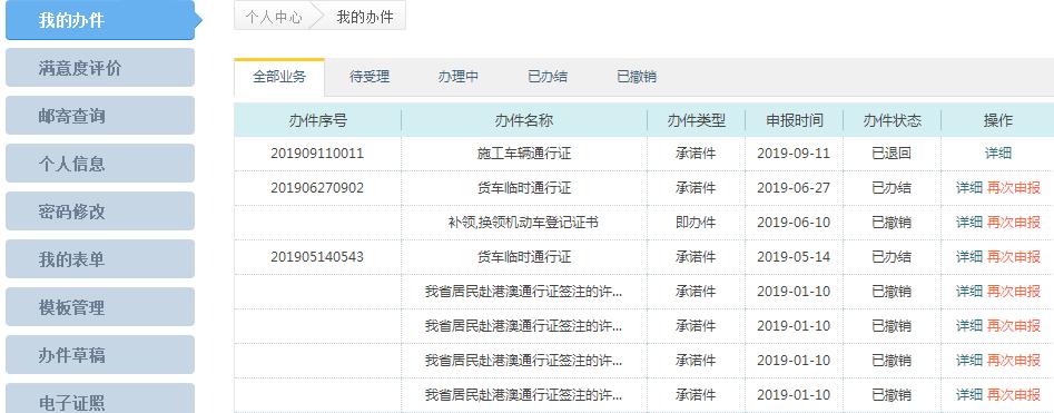 同時,在“用戶中心”中還提供了“我的辦件—再次申報(bào)”和“模板管理”等功能,申請人申請事項(xiàng)時可調(diào)取歷史辦件信息或“模板信息”,根據(jù)需要稍作修改即可直接完成在線申報(bào),無需再逐項(xiàng)上傳附件等申報(bào)信息。智能化服務(wù)讓企業(yè)、群眾網(wǎng)上操作更簡便、更高效。