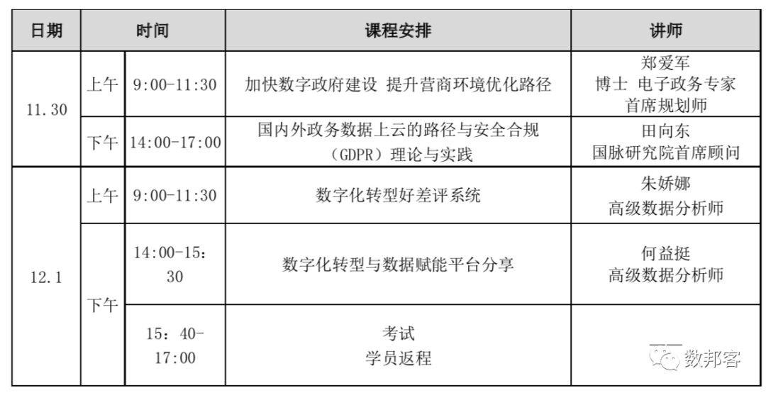 為了深入貫徹落實(shí)黨的十九大精神, 深化"互聯(lián)網(wǎng)+政務(wù)服務(wù)"的工作部署,使大數(shù)據(jù)時(shí)代的政務(wù)服務(wù)運(yùn)營者與政府治理工作者明晰未來城市治理與大數(shù)據(jù)運(yùn)營工作思路,培養(yǎng)一批既能洞察政務(wù)大數(shù)據(jù)價(jià)值又能推動(dòng)數(shù)據(jù)賦能實(shí)際業(yè)務(wù)的專業(yè)人才隊(duì)伍,國脈研究院將于2019年11月30日-12月1日舉辦2019政務(wù)大數(shù)據(jù)與數(shù)字政府理論與實(shí)踐高級研修班(第六期)。具體事宜通知如下: 2019年11月30日-12月1日,北京萬壽賓館 1、針對大數(shù)據(jù)、互聯(lián)網(wǎng)+政務(wù)、營商環(huán)境相關(guān)政策文件進(jìn)行解讀,由知名專家向?qū)W員詳細(xì)地解釋相關(guān)政策的具體內(nèi)容和精神,使學(xué)員對政策有更為清晰的認(rèn)識(shí),以利于快速消化政策內(nèi)容,準(zhǔn)確制定政策落實(shí)計(jì)劃或措施。 2、傳播和培訓(xùn)"互聯(lián)網(wǎng)+政務(wù)、數(shù)字政府、數(shù)據(jù)治理、營商環(huán)境等"理念和知識(shí),了解數(shù)字政府發(fā)展趨勢,推進(jìn)政務(wù)服務(wù)"一網(wǎng)、一門、一次"改革實(shí)施,使各級機(jī)構(gòu)培養(yǎng)人才把握相關(guān)運(yùn)營管理的先進(jìn)理念、方法和工具。 3、傳授營商環(huán)境以及政務(wù)服務(wù)事項(xiàng)標(biāo)準(zhǔn)化與主題場景優(yōu)化實(shí)踐的思路、方法和技巧,使學(xué)員掌握相關(guān)技能,能夠運(yùn)用到日常工作中。 1、國家部委/省/市政府辦公廳、發(fā)改委、行政審批局、電子政務(wù)辦、信息中心、工信廳、經(jīng)信委、政務(wù)服務(wù)中心、大數(shù)據(jù)局、智慧城市辦、政務(wù)公開辦等單位的主管領(lǐng)導(dǎo)及技術(shù)人員; 2、從政務(wù)大數(shù)據(jù)、政務(wù)信息資源相關(guān)行業(yè)的互聯(lián)網(wǎng)企業(yè)、軟件企業(yè)相關(guān)管理層、產(chǎn)品經(jīng)理、技術(shù)人員等; 3、行業(yè)大數(shù)據(jù)運(yùn)營服務(wù)商、高校、大數(shù)據(jù)相關(guān)科研機(jī)構(gòu)人員等。 1、專家授課:由中國頂尖大數(shù)據(jù)專家組成的講師團(tuán)隊(duì)親自授課,站在巨人肩膀之上,奠定堅(jiān)實(shí)基礎(chǔ),了解當(dāng)前大數(shù)據(jù)產(chǎn)業(yè)發(fā)展形勢; 2、全程項(xiàng)目實(shí)踐:貫穿整個(gè)課程的項(xiàng)目實(shí)戰(zhàn)經(jīng)驗(yàn),培訓(xùn)模式采用創(chuàng)新的線上和線下結(jié)合的方式,建立隨時(shí)與講師互動(dòng)交流機(jī)制,及時(shí)消化所學(xué)內(nèi)容,通過代表性的項(xiàng)目剖析傳授實(shí)戰(zhàn)經(jīng)驗(yàn)和技能; 3、授課形式靈活:互動(dòng)課堂、實(shí)際行業(yè)應(yīng)用展示、提供數(shù)字政府、大數(shù)據(jù)、營商環(huán)境、互聯(lián)網(wǎng)+政務(wù)服務(wù)項(xiàng)目方案咨詢、實(shí)施指導(dǎo)。 培訓(xùn)費(fèi)用8000元/人(含報(bào)名費(fèi)、培訓(xùn)費(fèi)、學(xué)習(xí)交流費(fèi)、教材費(fèi)、證書費(fèi)等相關(guān)費(fèi)用)。交通、住宿費(fèi)自理。培訓(xùn)結(jié)束,考試通過后頒發(fā)【政務(wù)大數(shù)據(jù)運(yùn)營管理師】高級職業(yè)技術(shù)水平證書。 收款單位: 公司名稱:北京國脈互聯(lián)信息顧問有限公司 開戶行:中國光大銀行北京石景山支行 賬號(hào):35300188000213046 聯(lián)系人:崔穎 電 話:13488715115(微信) 郵 箱:cy@govmade.cn 聯(lián)系人:劉丹 電 話:13269683561(微信) 郵 箱:liudan@govmade.cn