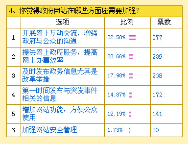 針對(duì)政府網(wǎng)站的調(diào)查,網(wǎng)友主要反映出四個(gè)方面的問(wèn)題: