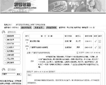 記者發(fā)現(xiàn),鶴壁市淇濱區(qū)、開封市等地區(qū)的政府網(wǎng)站雖然設(shè)置了“領(lǐng)導(dǎo)信箱”,但是自始至終就沒有真正投入使用。安陽市文峰區(qū)的區(qū)長信箱內(nèi)“躺”著的四封郵件則還是郵箱正式投入使用時的測試郵件。而有的信箱像是“聚寶盆”只進(jìn)不出,記者4月20日點擊中牟縣“縣長信箱”鏈接頁面顯示“截至目前共收接到信件10封,已辦理0封,正在辦理10封”,而可供查詢的日期為“2008-1-1至2009-4-20”,為期一年有余。
