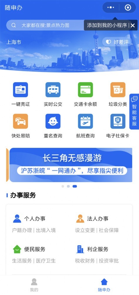 “隨申辦”小程序的落地應(yīng)用,將極大提高上海市民辦事效率、提高生活幸福感。比方說,自從垃圾分類政策執(zhí)行以來,干垃圾、濕垃圾總是“傻傻分不清”,現(xiàn)在只要打開“隨申辦”小程序,輕松查詢垃圾類別。不僅如此,公積金、保險(xiǎn)理賠等過去需要耗費(fèi)大力時(shí)間排隊(duì)處理的事項(xiàng),現(xiàn)在市民只需動(dòng)動(dòng)手指即可查詢、辦理,省時(shí)省力。同時(shí),證件的電子化,讓我們打開微信小程序即可輕松自證身份,之前因一件證件沒帶,耽誤業(yè)務(wù)辦理的情況得以解決。
