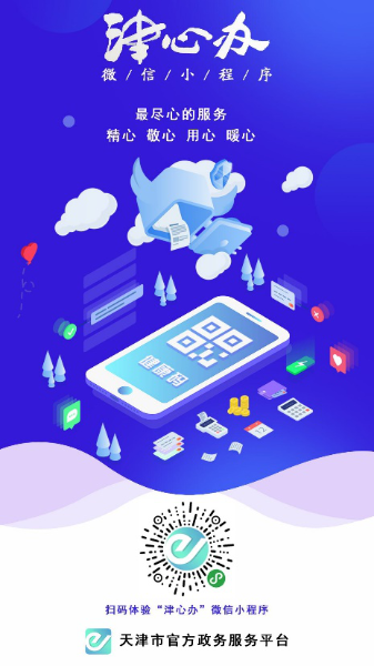 微信掃描此小程序碼進(jìn)入“津心辦”小程序