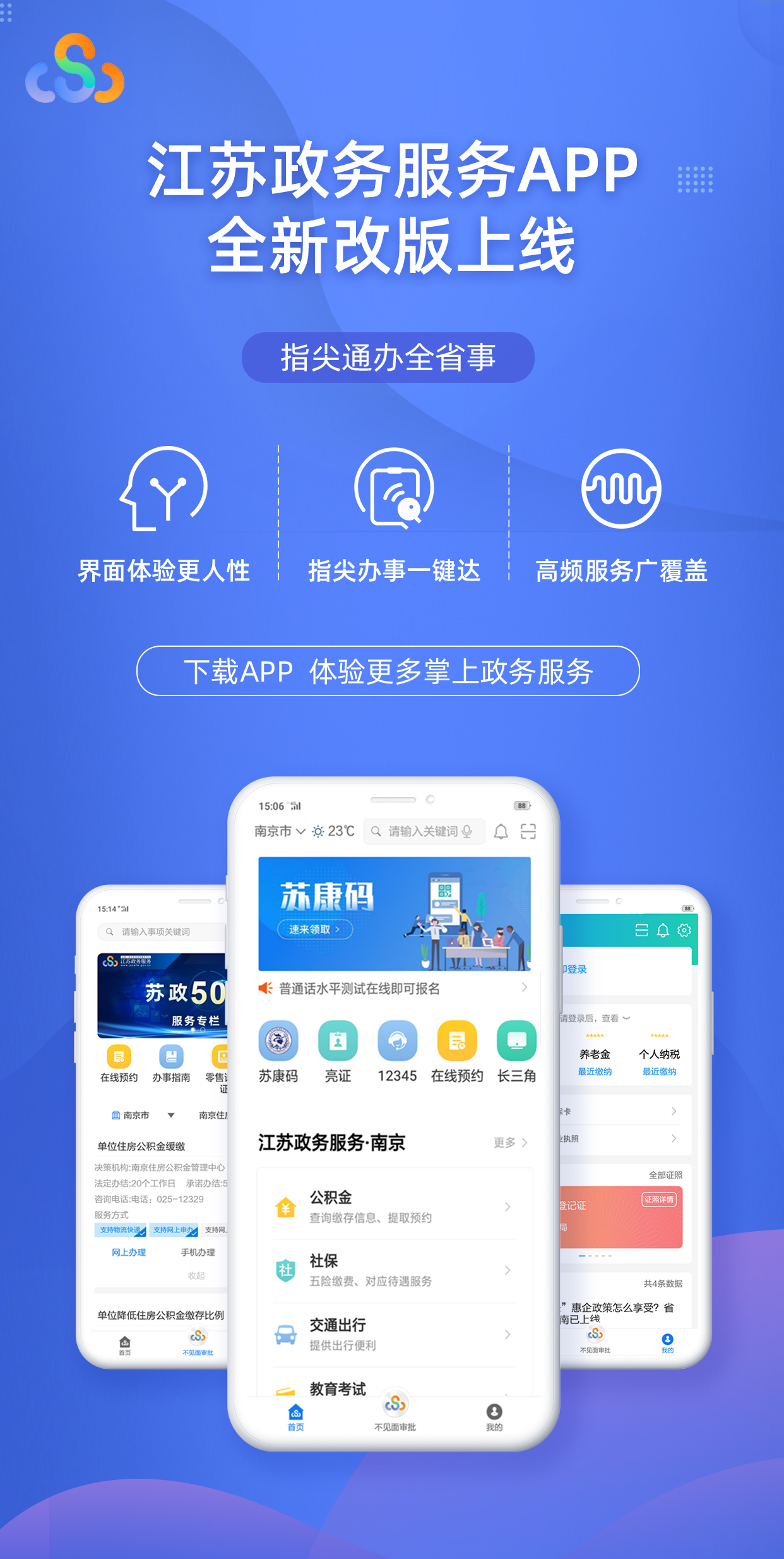 新版江蘇政務(wù)服務(wù)APP,在服務(wù)層級(jí)、界面內(nèi)容上做減法,使用戶更快觸達(dá)所在地政務(wù)服務(wù);優(yōu)化搜索功能,支持模糊搜索及精準(zhǔn)定位,方便用戶快速查找;滾動(dòng)展示服務(wù)資訊,增加個(gè)性化提醒,化被動(dòng)服務(wù)為主動(dòng)服務(wù);對(duì)現(xiàn)有2000余項(xiàng)應(yīng)用,按照使用頻次、業(yè)務(wù)覆蓋范圍等重新“排排坐”,突出展示重點(diǎn)、高頻應(yīng)用。