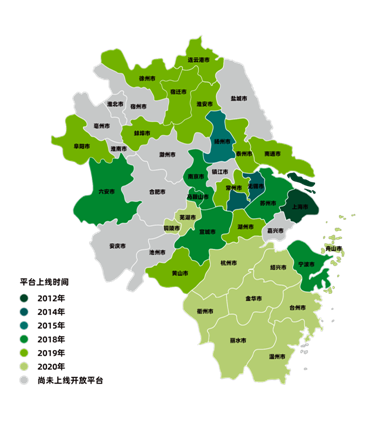 長三角各地平臺的上線時間和空間分布(直轄市、副省級與地級城市)