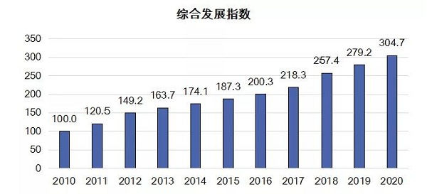 2010~2020年全國(guó)知識(shí)產(chǎn)權(quán)發(fā)展指數(shù)