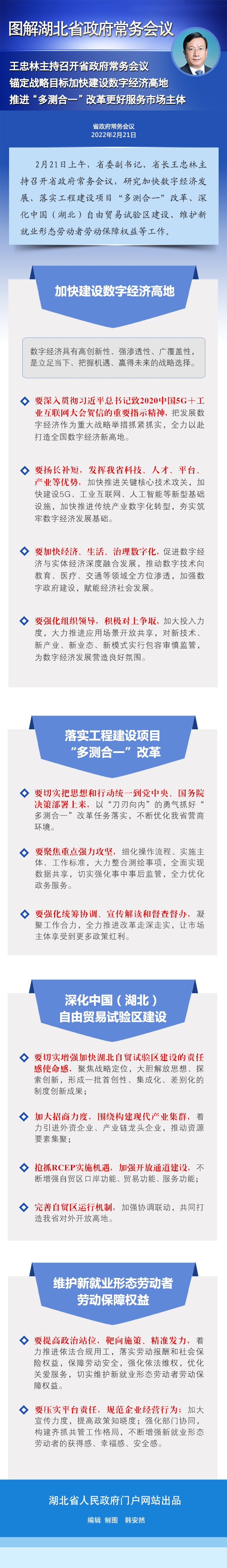 2月21日上午,省委副書記、省長王忠林主持召開省政府常務(wù)會議,研究加快數(shù)字經(jīng)濟發(fā)展、落實工程建設(shè)項目“多測合一”改革、深化中國(湖北)自由貿(mào)易試驗區(qū)建設(shè)、維護新就業(yè)形態(tài)勞動者勞動保障權(quán)益等工作。