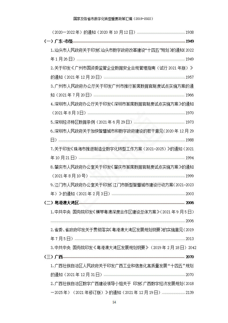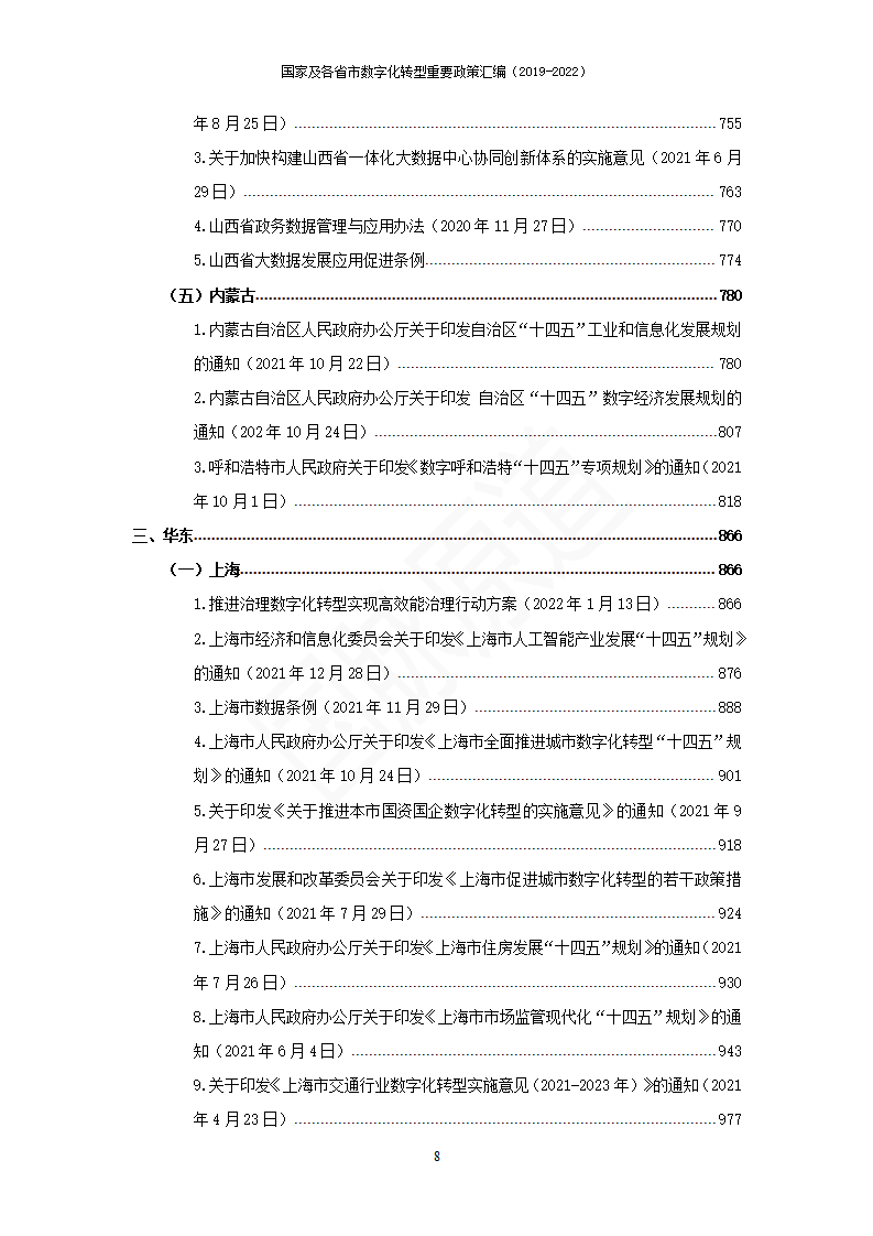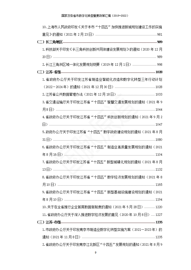 湖南國(guó)脈原道數(shù)據(jù)科技有限公司對(duì)國(guó)家層面、省級(jí)層面及部分市級(jí)層面2019年-2022年出臺(tái)的數(shù)字化轉(zhuǎn)型相關(guān)的政策文件進(jìn)行了匯編,共計(jì)200余個(gè)文件,3000余頁(yè),近200萬(wàn)字。該匯編將持續(xù)性更新,是各地各部門(mén)數(shù)字化工作開(kāi)展的重要參考。