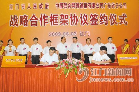 6月3日,江門市人民政府與廣東聯(lián)通簽定戰(zhàn)略合作協(xié)議。