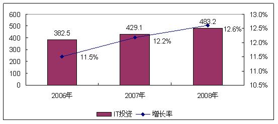 構建服務型政府已經(jīng)成為我國電子政務系統(tǒng)的建設目標,政府信息化的不斷推進,使得中國電子政務IT投資逐年保持著穩(wěn)定的增長。2008年的電子政務建設是走向務實的一年,政府行業(yè)IT投入保持了12.6%的增長,總規(guī)模達到483.2億元。根據(jù)2008年底的調(diào)查反映出,2008年的中央財政和地方財政尤其經(jīng)濟發(fā)達地區(qū)地方財政的IT投入在平穩(wěn)中略有增長(上半年增長較快,下半年增長下降,部分地區(qū)負增長),電子政務工程的投資管理更加規(guī)范。