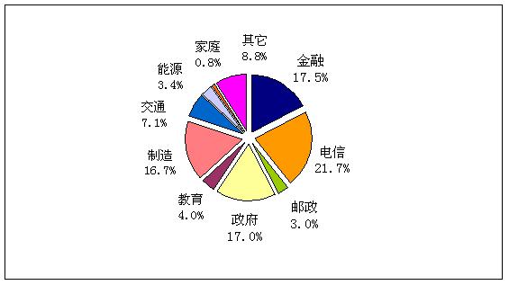 2008年政府行業(yè)信息化建設中硬件投入比例會繼續(xù)減少,雖然投資結構不會發(fā)生本質(zhì)變化,但軟件和維護的費用將有大幅度提高。2008年政府IT投資中軟件的投資比例將達到21.5%,繼續(xù)保持高速增長;IT服務與維護的投資比例將達到21.2%,增長率達到19.8%,創(chuàng)造歷史新高;而硬件的投資比例將下降至54.9%,增長率只有3.5%。