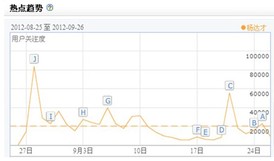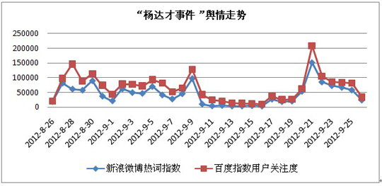“楊達(dá)才事件”自2012年8月26日在微博首先曝光以后,輿論關(guān)注度一路走高,成為近年來“網(wǎng)絡(luò)反腐”的典型案例。