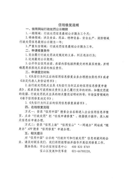 《信用修復(fù)告知書》按照“誰處罰、誰提醒、誰指導(dǎo)”原則,主動告知經(jīng)營主體行政處罰信息公示途徑、修復(fù)條件及流程等內(nèi)容,推動失信企業(yè)及時進行信用修復(fù)。
