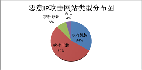在19個(gè)IP中,發(fā)現(xiàn)其中有兩個(gè)IP65.49.2.171、65.49.2.184在過(guò)去一周曾經(jīng)有過(guò)攻擊行為。而攻擊的主要目標(biāo)為軟件下載網(wǎng)站、政府網(wǎng)站,政府網(wǎng)站受攻擊比率高達(dá)34%。據(jù)分析,攻擊政府網(wǎng)站主要是使用已知應(yīng)用漏洞對(duì)網(wǎng)站進(jìn)行漏洞探測(cè),嘗試竊取敏感信息。其次為XSS跨站攻擊,而XSS跨站攻擊的一個(gè)主要應(yīng)用方式即為網(wǎng)絡(luò)釣魚(yú)。在加速樂(lè)云防御平臺(tái)攔截下,這些攻擊并沒(méi)有奏效。