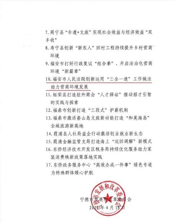 福安市人民法院創(chuàng)新運(yùn)用“三全一速”工作做法