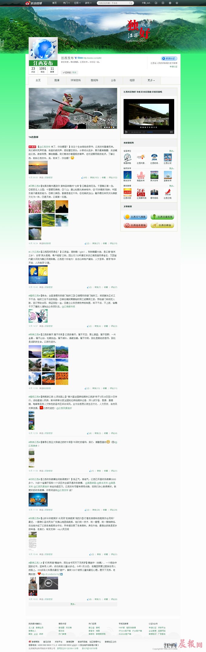 據(jù)了解,“江西發(fā)布”是江西省人民政府新聞辦公室實(shí)名認(rèn)證的官方微博。以“江西發(fā)布”上線為標(biāo)志,江西已初步建立省、廳、市政務(wù)微博矩陣。