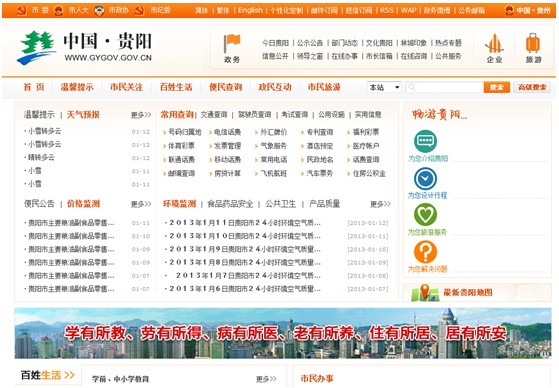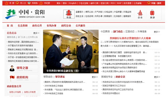 貴陽市政府門戶網(wǎng)站采用以服務(wù)對象、網(wǎng)站功能相結(jié)合的多維度方式進(jìn)行規(guī)劃和設(shè)計。頻道按照用戶對象分為政務(wù)、企業(yè)、市民、旅游;同時欄目按照政務(wù)信息、網(wǎng)上辦事、互動交流等網(wǎng)站功能的相關(guān)文件以及電子政務(wù)發(fā)展趨勢要求和民生服務(wù)需求設(shè)立欄目,凸顯國內(nèi)一流政府網(wǎng)站的建設(shè)理念。