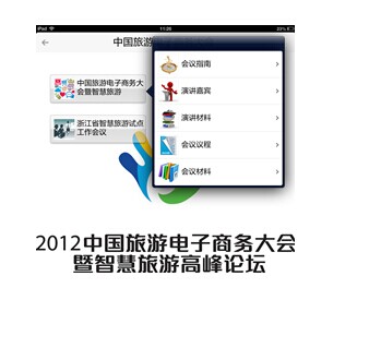 當(dāng)我收到精美的邀請函,頓時(shí)眼前一亮,映入眼簾唯有一個二維碼,懷著好奇掏出手機(jī)輕輕一掃,名為“2012中國旅游電子商務(wù)大會移動秘書”的客戶端已然下載到手機(jī)中。打開客戶端使用片刻,便贊嘆這款A(yù)PP名副其實(shí),無愧于移動秘書這一稱號。APP中各地的旅游資訊、當(dāng)?shù)孛谰?,自動且?shí)時(shí)地聚合為一個個資源,可以方便地訂閱,就如同貼身的秘書幫你收集好了需要翻閱的各種資料,省去到處上網(wǎng)搜尋的煩惱,頓覺貼心。使用下去越發(fā)感覺到此款A(yù)PP的貼心與方便,每位參會專家的簡介、演講時(shí)間都整理在列,受邀者到達(dá)場館的最優(yōu)行程,會議場館附近的餐廳、酒店都已然預(yù)置在客戶端中,方便大家參考、選擇......總而言之,這款A(yù)PP無處不讓人感覺到貼心與便捷。