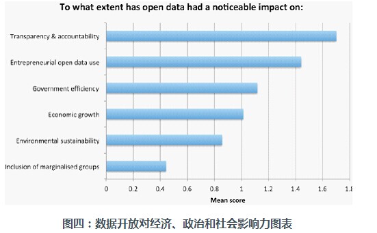 在執(zhí)行力方面,英國在不斷擴大政府數(shù)據(jù)開放范圍的同時,也在提升數(shù)據(jù)的“深度”,不斷提升數(shù)據(jù)的質量、標準化程度和關聯(lián)度。目前,英國現(xiàn)在全力推進一個以保存、發(fā)展和提升核心數(shù)據(jù)為主的“國家信息化基礎設施”(National Information Infrastructure)項目。但在影響力方面,英國公開數(shù)據(jù)在影響力方面表現(xiàn)不是很理想,數(shù)據(jù)開放對經(jīng)濟產(chǎn)生的影響力最大,但對社會所帶來的影響并不明顯。