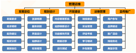 管理運(yùn)維是政府網(wǎng)站發(fā)展建設(shè)的基礎(chǔ),是指導(dǎo)網(wǎng)站建設(shè)和運(yùn)營,全面協(xié)調(diào)網(wǎng)站優(yōu)勢資源,保證網(wǎng)站持續(xù)發(fā)展的核心手段,包括發(fā)展定位、規(guī)劃設(shè)計(jì)、開發(fā)建設(shè)、運(yùn)維管理、宣傳推廣5個(gè)要素。