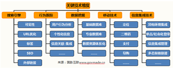 關(guān)鍵技術(shù)是政府網(wǎng)站發(fā)展建設(shè)的支撐,是突破政府網(wǎng)站建設(shè)瓶頸,提升政府網(wǎng)站應(yīng)用績效,創(chuàng)新政府網(wǎng)站服務(wù)模式的主要途徑,包括搜索引擎技術(shù)、行為跟蹤技術(shù)、數(shù)據(jù)挖掘技術(shù)、移動(dòng)技術(shù)、信息集成技術(shù)5個(gè)要素。