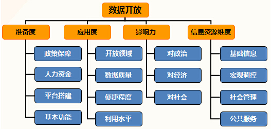隨著大數(shù)據(jù)時(shí)代的來臨,數(shù)據(jù)開放將作為未來政府網(wǎng)站建設(shè)的重中之重,包括準(zhǔn)備度、應(yīng)用度、影響力三個(gè)要素;此外,考慮到信息資源的維度,圍繞政府部門四項(xiàng)基本職能,也需從基礎(chǔ)信息、宏觀調(diào)控、社會(huì)管理、公共服務(wù)四個(gè)方面對(duì)數(shù)據(jù)開放進(jìn)行考評(píng)。