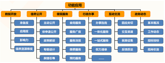 功能應(yīng)用是政府網(wǎng)站發(fā)展建設(shè)的目的,是盤活政府網(wǎng)站信息資源,優(yōu)化政府網(wǎng)站組織架構(gòu),提升政府網(wǎng)站用戶體驗(yàn)的重要,包括信息公開、數(shù)據(jù)開放、辦事服務(wù)、互動(dòng)交流、政務(wù)動(dòng)態(tài)5個(gè)要素。
