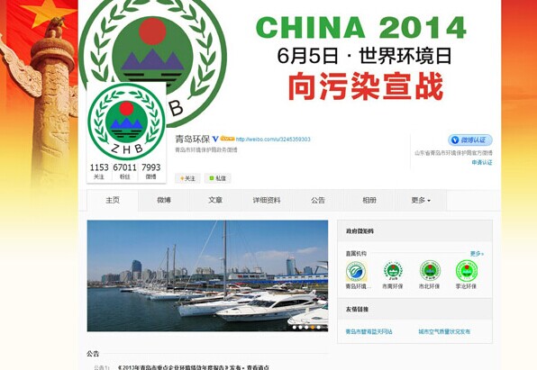 人民網(wǎng)輿情監(jiān)測室聯(lián)合新浪網(wǎng)近日發(fā)布《2014年上半年新浪政務(wù)微博報(bào)告》,報(bào)告公布了“十大環(huán)保微博”名單。