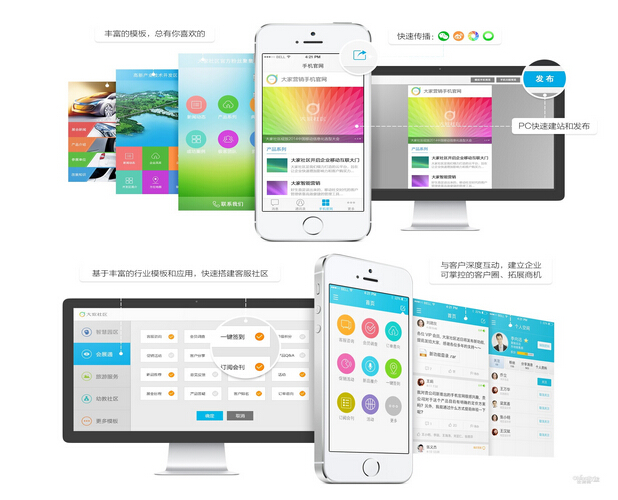比如:適合微信推廣的“手機(jī)網(wǎng)站模板”,適合服務(wù)業(yè)的“客戶調(diào)查模板”,適合會議組織的“會議通”方案,適合客戶俱樂部經(jīng)營的“客戶社區(qū)應(yīng)用方案”等等。