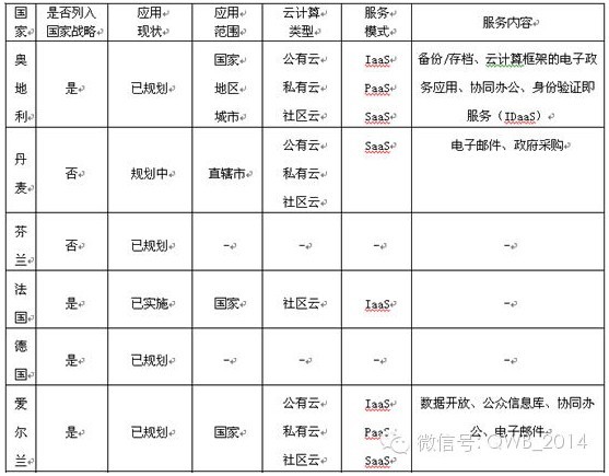 歐洲大多數(shù)國家計(jì)劃在全國層面的公共部門應(yīng)用云計(jì)算,而奧地利、法國、西班牙和英國4國正在計(jì)劃或已經(jīng)開發(fā)部署專門的政府云(g-cloud)。