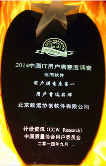 近日,由中國權(quán)威質(zhì)量監(jiān)督機構(gòu)——中國質(zhì)量協(xié)會用戶委員會、工業(yè)和信息化部電子科學(xué)技術(shù)情報研究所、國內(nèi)權(quán)威ICT研究咨詢機構(gòu)——計世資訊(CCW Research)聯(lián)合公布的“2014中國IT用戶滿意度調(diào)研”結(jié)果顯示,致遠軟件憑借在中國協(xié)同OA軟件領(lǐng)域的先進理念、過硬產(chǎn)品、優(yōu)質(zhì)服務(wù),連續(xù)六年蟬聯(lián)中國協(xié)同軟件 “用戶滿意度第一”和“用戶首選品牌”兩項重大殊榮。同時獲得其他領(lǐng)域用戶滿意度第一的企業(yè)還包括IBM、HP、聯(lián)想、用友等國際國內(nèi)知名IT企業(yè)。加之年初由中國另一家著名的ICT研究咨詢機構(gòu)——賽迪顧問(CCID)發(fā)布的《2013-2014中國辦公協(xié)同軟件市場研究年度報告》中顯示的致遠軟件連續(xù)九年獲得協(xié)同OA軟件市場占有率第一的結(jié)論,充分顯示了致遠軟件在產(chǎn)品研發(fā)、市場營銷、客戶服務(wù)這3個維度,均獲得了行業(yè)和社會的最高認(rèn)同,其綜合實力在中國協(xié)同OA管理軟件領(lǐng)域中處于絕對的行業(yè)領(lǐng)導(dǎo)者地位!