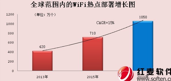 據一份WiFi聯盟的數據顯示,中國已經成為WiFi需求量最大的市場。WiFi在中國的滲透率達到21.8%。到2016年,預計中國將新增1.1億個 WiFi家庭,占全球WiFi家庭總量的31%。