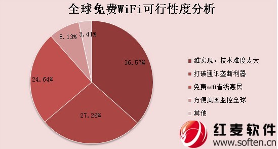 2014年2月9日,美國一家科技公司準備了一個“外聯網”(Outernet)計劃,計劃在2015年發(fā)射數百個小衛(wèi)星,向全球提供免費WiFi服務。如果順利,屆時可在地球上任何一個角落都能享用免費無線網。但對于此項計劃,中國網民保持一種悲觀的狀態(tài)。據紅麥輿情調查顯示,其中有36.57%的人認為技術難度太大,實現起來比較困難,另有27.26%的人認為此舉可以打破通訊壟斷利器。認為“免費WiFi省錢惠民”占比24.64%。