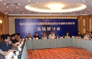 這是在,國(guó)家863計(jì)劃“基于程序行為自主分析判斷的實(shí)時(shí)防護(hù)技術(shù)”課題組召開(kāi)的“病毒防范現(xiàn)狀與國(guó)際病毒防御技術(shù)最新發(fā)展趨勢(shì)”高端研討會(huì)上的一幕。