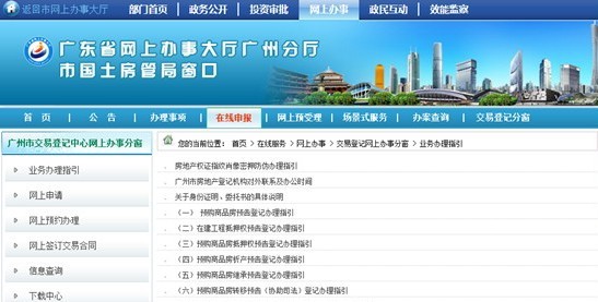 該網(wǎng)站下的交易登記中心網(wǎng)上辦事分窗更體現(xiàn)了其網(wǎng)上辦事的服務(wù)特色。其歸集了目前全部房地產(chǎn)交易登記網(wǎng)上辦理業(yè)務(wù),實(shí)現(xiàn)一站式服務(wù)。市民只需登錄交易登記中心網(wǎng)上辦事分窗地址,輕點(diǎn)鼠標(biāo),從業(yè)務(wù)辦理指引、網(wǎng)上申請(qǐng)、網(wǎng)上預(yù)約辦理、網(wǎng)上簽訂交易合同到信息查詢,均可整合式辦理,速度快、效率高。