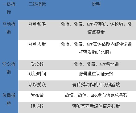 表1:政務(wù)新媒體研究指標(biāo)體系