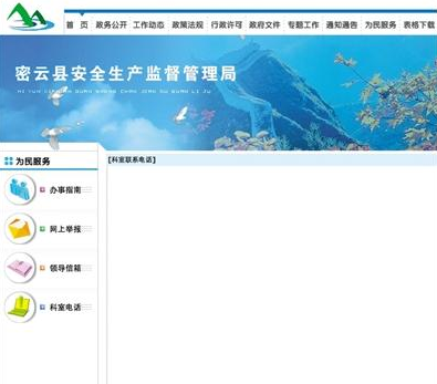 19日,密云縣安全生產(chǎn)監(jiān)督管理局官網(wǎng),“為民服務(wù)”欄目下,“科室聯(lián)系電話”顯示空白。