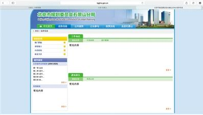 北京市規(guī)劃委員會(huì)石景山分局官網(wǎng),“政務(wù)信息”欄下三個(gè)版塊均顯示“暫無內(nèi)容”。