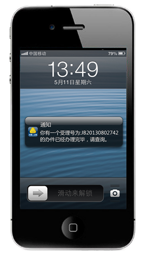 移動終端系統(tǒng)可以綁定用戶手機(jī)的設(shè)備ID,并在手機(jī)上自動記錄提交的辦件編號,供將來進(jìn)行辦件查詢。這將比電腦更加方便。
