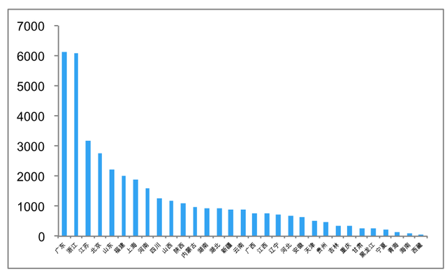 從區(qū)域來看,政務微信排名前十的省市來自東部地區(qū)。其中廣東省政務微信總量占比15.0%,浙江省占14.8%,兩者之和超過位居第三的蘇州一倍。西部地區(qū)的發(fā)展則相對遲緩,報告稱其原因是各地經濟社會發(fā)展需求和政務服務能力的反映。