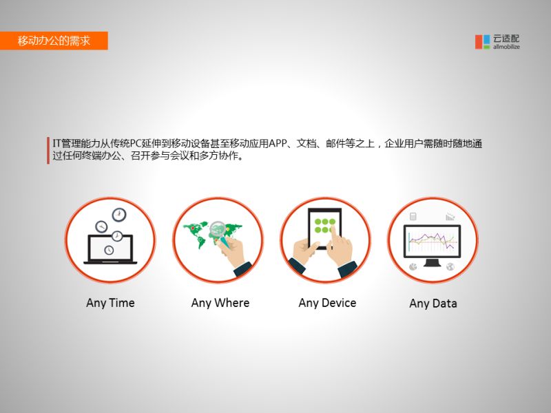 剛才主要講的是對(duì)外網(wǎng)站的跨屏產(chǎn)品。接下來(lái)講一下對(duì)移動(dòng)辦公系統(tǒng)的相關(guān)產(chǎn)品。