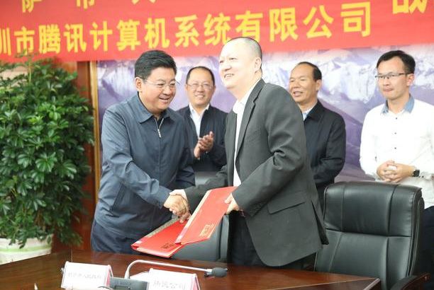 拉薩市委副書記、市長、市委政法委書記張延清與騰訊公司副總裁謝呼代表雙方簽約,共同努力把拉薩建設(shè)成為我國邊疆少數(shù)民族地區(qū)“互聯(lián)網(wǎng)+”時代的示范城市。