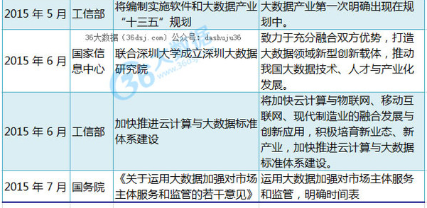 值得注意的是,近期國(guó)務(wù)院出臺(tái)文件對(duì)各個(gè)部委推進(jìn)大數(shù)據(jù)任務(wù)制定了明確的時(shí)間表,很多推進(jìn)工作任務(wù)要求在 2015 年 12 月底前出臺(tái)政策并實(shí)施,近期將是我國(guó)大數(shù)據(jù)發(fā)展政策出臺(tái)的密集期。
