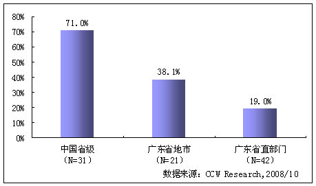 計(jì)世資訊選取我國(guó)31個(gè)省級(jí)政府網(wǎng)站以及廣東省的21個(gè)地級(jí)市和42個(gè)省直部門(mén)網(wǎng)站為研究對(duì)象。調(diào)研結(jié)果表明,三類網(wǎng)站申請(qǐng)公開(kāi)欄目的擁有率成倍遞減,省級(jí)政府網(wǎng)站、廣東地級(jí)市政府網(wǎng)站和廣東省直部門(mén)政府網(wǎng)站申請(qǐng)公開(kāi)欄目的擁有率分別為71.0%、38.1%和19.0%(如下圖所示),遠(yuǎn)達(dá)不到國(guó)家要求。