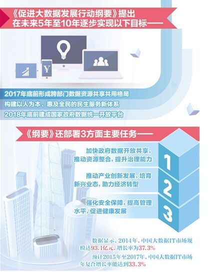 加快大數(shù)據(jù)部署,深化大數(shù)據(jù)應(yīng)用,已成為穩(wěn)增長、促改革、調(diào)結(jié)構(gòu)、惠民生,以及推動政府治理能力現(xiàn)代化的內(nèi)在需要和必然選擇?!毒V要》出臺,正是藉此激發(fā)大數(shù)據(jù)產(chǎn)業(yè)的巨大潛力,釋放市場主體的創(chuàng)新活力,為“中國制造2025”、“互聯(lián)網(wǎng)+”再添動力——