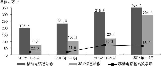 圖2 我國移動(dòng)電話基站數(shù)發(fā)展情況