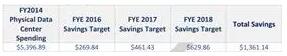 “各政府部門要在2018年財年底之前,相比2016年財年提交到聯(lián)邦政府IT儀表板的IT基礎(chǔ)設(shè)施開支數(shù)據(jù),將物理數(shù)據(jù)中心方面的政府年度成本至少削減25%。各政府部門應(yīng)在2016年、2017年和2018年這每個財年,共同實現(xiàn)下列數(shù)字的成本節(jié)約。”