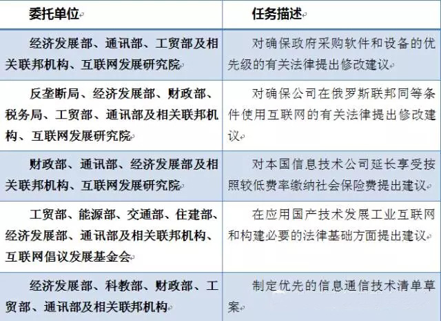 普京在首屆俄互聯(lián)網(wǎng)論壇上指出,考慮到全球網(wǎng)絡(luò)發(fā)展總趨勢(shì),俄羅斯的互聯(lián)網(wǎng)發(fā)展需要做好長期發(fā)展戰(zhàn)略規(guī)劃。在對(duì)總趨勢(shì)做出判斷的同時(shí),要尊重我們的合作和競(jìng)爭伙伴,為互聯(lián)網(wǎng)市場(chǎng)的所有參與者提供統(tǒng)一的發(fā)展條件,并在不違反WTO框架協(xié)議的前提下,適當(dāng)考慮對(duì)市場(chǎng)參與者提供優(yōu)惠措施。普京在論壇上簽署了關(guān)于構(gòu)建俄羅斯互聯(lián)網(wǎng)經(jīng)濟(jì)的委托文件,具體包括16項(xiàng)委托任務(wù)。