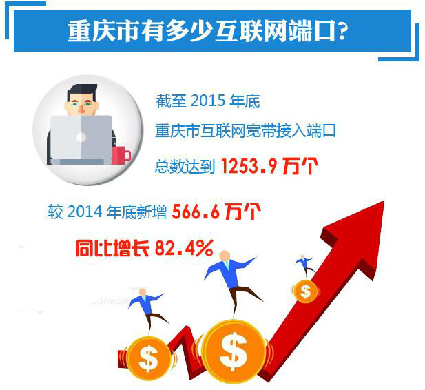 報(bào)告顯示,截至 2015 年底,重慶市光纜線路總長度達(dá)到 65.4萬公里,同比增長11.8%;互聯(lián)網(wǎng)寬帶接入端口總數(shù)達(dá)到 1253.9 萬個(gè),較2014 年底新增 566.6 萬個(gè),同比增長 82.4%。重慶市互聯(lián)網(wǎng)寬帶接入用戶中,速率在 8M 以上用戶占比 75.3%,較 2014 年提高 42.4 個(gè)百分點(diǎn),居全國第 17位。其中,速率在 20M 以上的寬帶用戶達(dá)到 189.3 萬戶,占比達(dá)到 37.4%,居全國第 15 位。重慶市移動電話基站數(shù)達(dá)到 9.0 萬個(gè),較 2014 年底新增 1.6 萬個(gè),同比增長 21.6% ;WLAN 公共運(yùn)營接入點(diǎn)(AP)數(shù)達(dá)到 13.0 萬個(gè);3G 基站數(shù)達(dá)到2.8萬個(gè),較2014年新增0.1萬個(gè),同比增長3.7%;4G基站數(shù)達(dá)到3.0萬個(gè)。可以看出,目前重慶市的網(wǎng)絡(luò)成長能力大幅提升,網(wǎng)絡(luò)基礎(chǔ)設(shè)施已具備為重慶市“互聯(lián)網(wǎng) +”發(fā)展提供堅(jiān)實(shí)基礎(chǔ)的條件。2015年,重慶市網(wǎng)絡(luò)基礎(chǔ)設(shè)施建設(shè)日趨完善。