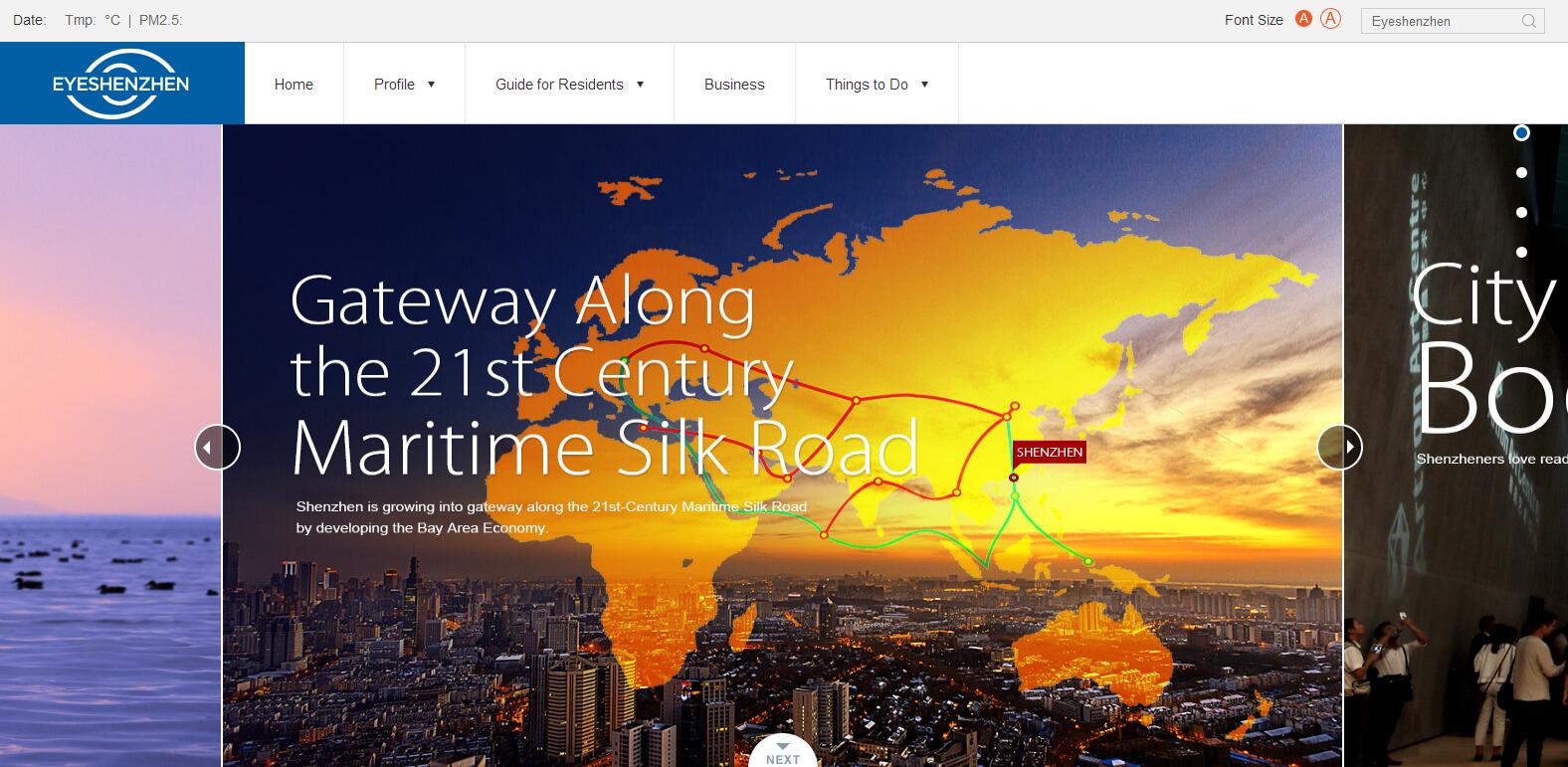 深圳市首個(gè)英文門(mén)戶(hù)網(wǎng)站EYESHENZHEN截圖